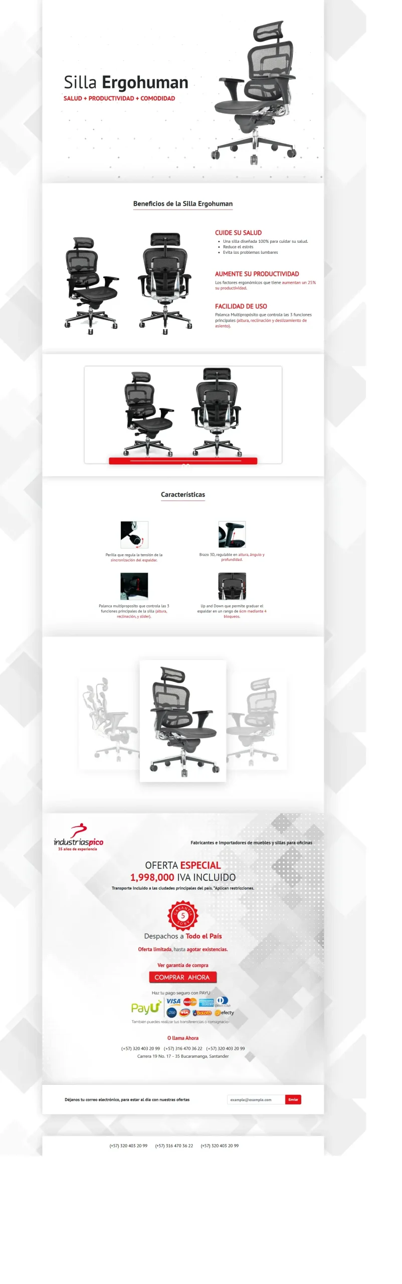 - Visual Integration: Adapted and optimized product photography (Ergohuman chair) to be displayed attractively within the landing page.